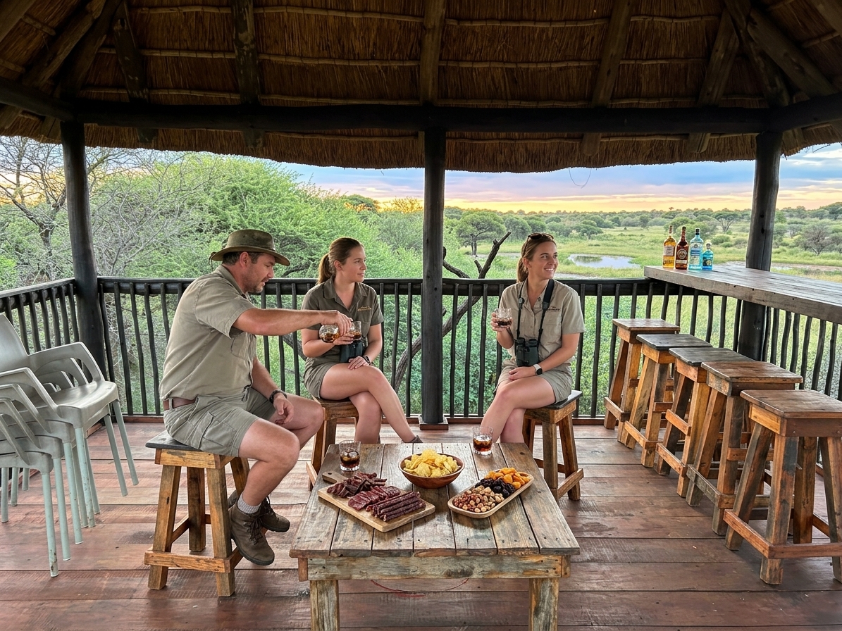 Pre-dawn coffee and rifle checks at Vark Kraal. Blade-cold air, wet finger to wind, city noise gone.