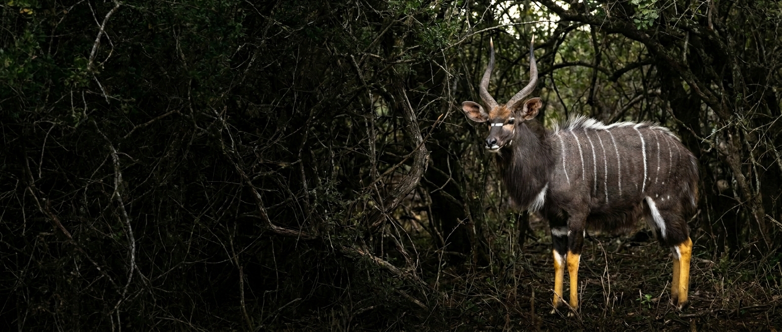 Nyala reward the hunter who treats riverine cover as architecture, not wallpaper. Stripes break outline in dapple; the spiral reads late. Glass upstream of your boots, then move on a clock that assumes a leopard already drew the same map.